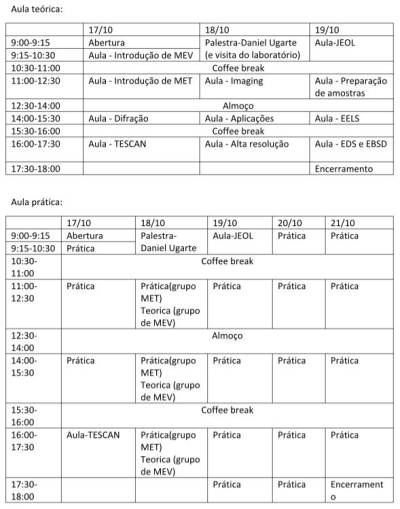 Treinamento prático intensivo (Hands-On) de operação de Microscópio Eletrônico de Varredura (MEV) e Microscópio Eletrônico de Transmissão (MET).